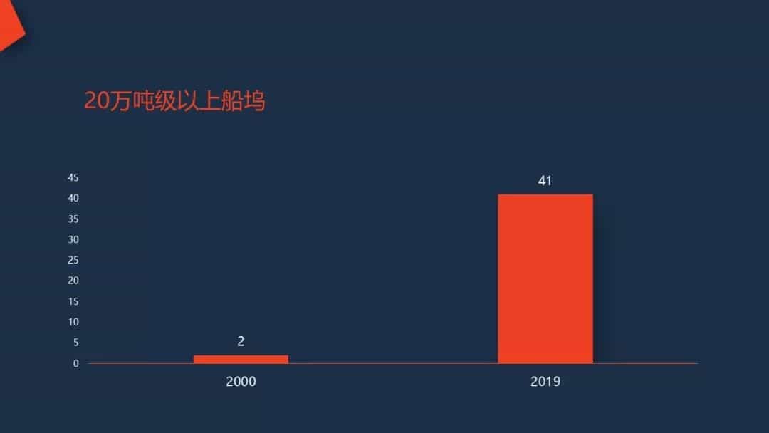 2001年開始,中國(guó)船舶工業(yè)進(jìn)入了高速發(fā)展期,據(jù)統(tǒng)計(jì),2000年,我國(guó)20萬噸以上船塢僅有2座,2019年,20萬噸級(jí)以上船塢達(dá)到41座,其中50萬噸級(jí)船塢6座。