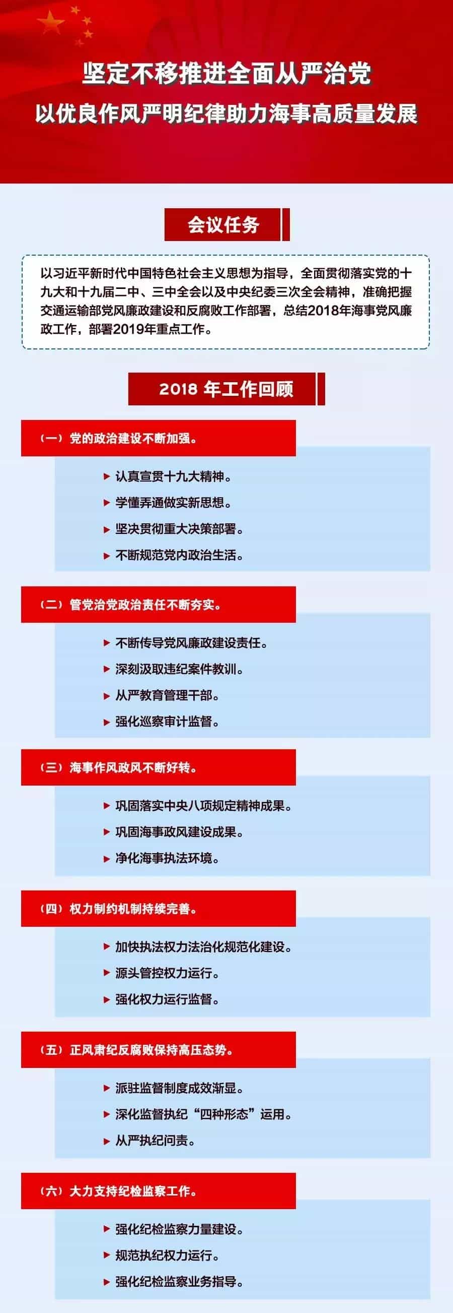 會上,曹德勝局長、黨組書記傳達(dá)了何建中副部長在2019年全國海事工作報(bào)告上的批示,作了題為《牢記新使命 展現(xiàn)新作為 開創(chuàng)新局面 全力推動海事高質(zhì)量發(fā)展》的工作報(bào)告,總結(jié)了2018年的工作成績及提出了對2019工作的展望。會上,曹德勝局長、黨組書記還作了題為《堅(jiān)定不移推進(jìn)全面從嚴(yán)治黨 以優(yōu)良作風(fēng)嚴(yán)明紀(jì)律助力海事高質(zhì)量發(fā)展》的直屬海事系統(tǒng)黨風(fēng)廉政建設(shè)工作報(bào)告。