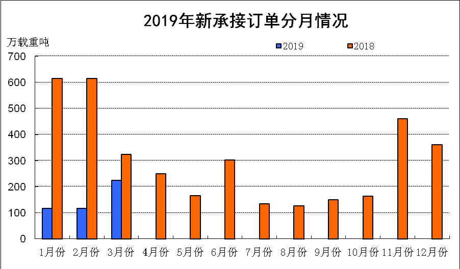 2019年1~3月份,國(guó)際航運(yùn)市場(chǎng)低位震蕩,全球新船訂單量同比大幅下降。我國(guó)造船完工量保持增長(zhǎng),但新承接訂單量和手持船舶訂單同比下降。重點(diǎn)監(jiān)測(cè)企業(yè)工業(yè)總產(chǎn)值等主要經(jīng)濟(jì)指標(biāo)止跌回升。