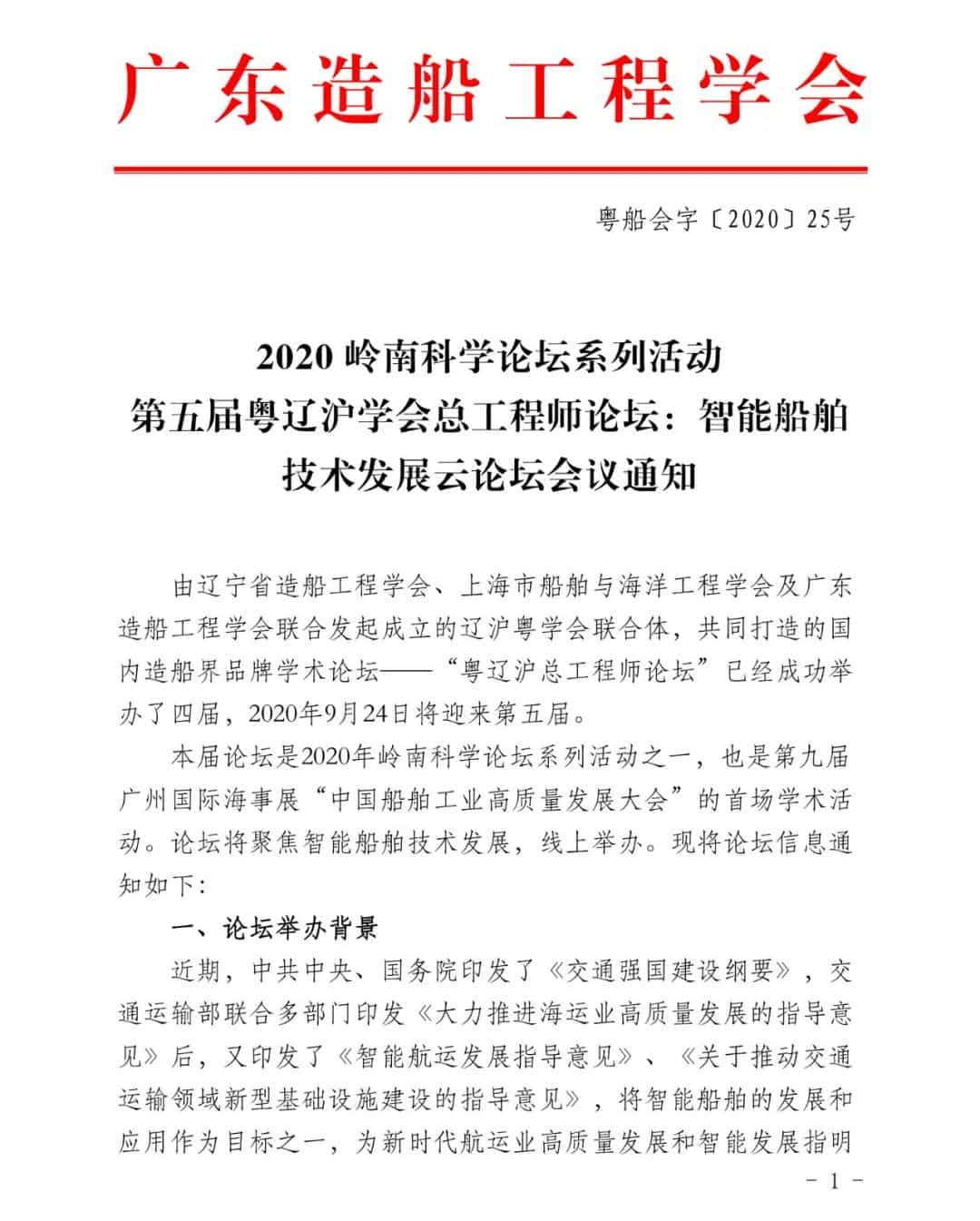 第五屆粵遼滬學會總工程師論壇:智能船舶技術發(fā)展云論壇會議通知