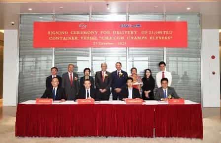 作為法國達(dá)飛輪船的聯(lián)合賣方,中國船舶集團(tuán)旗下江南造船和中國船舶工業(yè)貿(mào)易有限公司建造的23000TEU超大型雙燃料集裝箱船“達(dá)飛香榭·麗舍(CMA CGM CHAMPS ELYSEES)”號(hào)于10月27日正式命名交付。