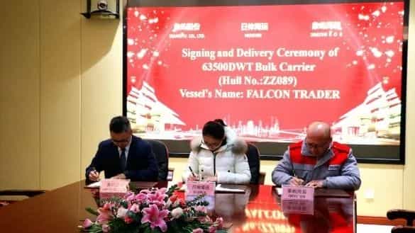 1月22日,象嶼海裝為日伸海運(yùn)建造的一艘名為“FALCON TRADER”的63500DWT散貨船交付,這是象嶼海裝交付日伸海運(yùn)的第13艘船。