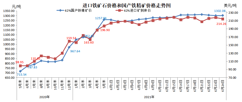 進(jìn)口與國(guó)產(chǎn)鐵礦石價(jià)格走勢(shì)圖