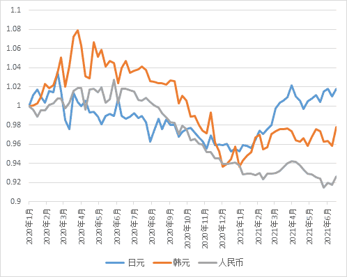 中日韓三國(guó)貨幣兌美元匯率變化對(duì)比