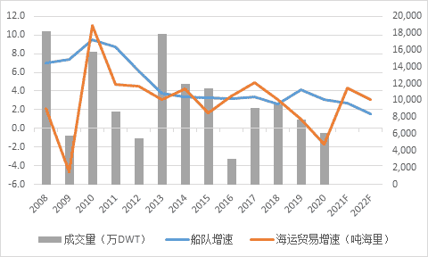 年度成交量與世界航運(yùn)貿(mào)易量變化對(duì)比