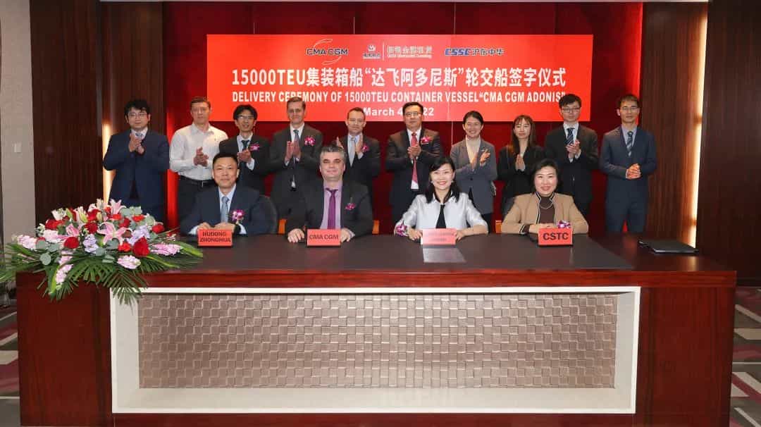 “達飛· 阿多尼斯”號是全球第一艘安裝除氮脫硫裝置和采用減搖系統(tǒng)新技術的大型箱船,該船綠色環(huán)保性佳、安全性高、可大幅減少貨物損耗。滬東中華優(yōu)質建造贏得船東贊譽,實現(xiàn)了整個項目提前交付。