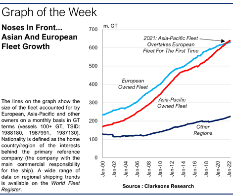 亞洲船東船隊(duì)規(guī)模終于首次超過歐洲船東。