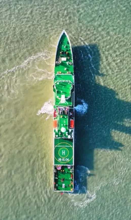 “海巡06”輪由武昌船舶重工集團(tuán)有限公司建造,船長128米,型寬16米,型深7.9米。