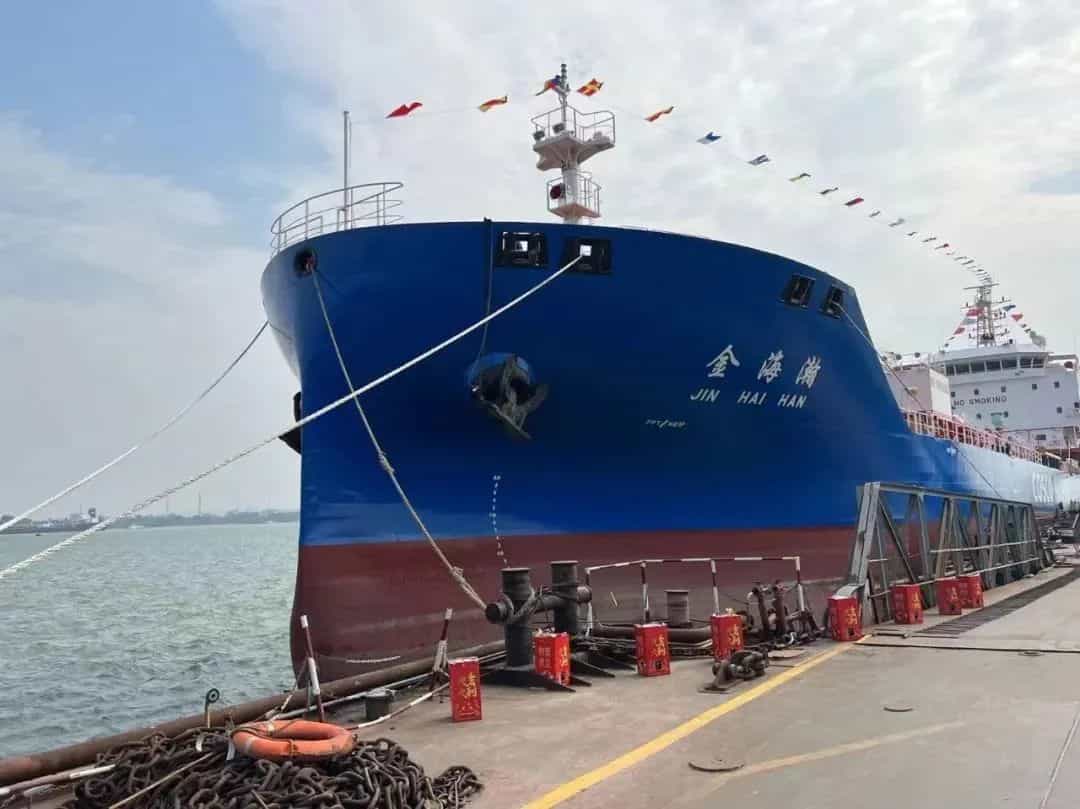 近日,由重慶川東船舶重工聯(lián)合中船貿(mào)易,為中遠(yuǎn)海運(yùn)(上海)建造的8000噸不銹鋼化學(xué)品船首制船--“金海瀚”號(hào),舉行命名交付儀式。