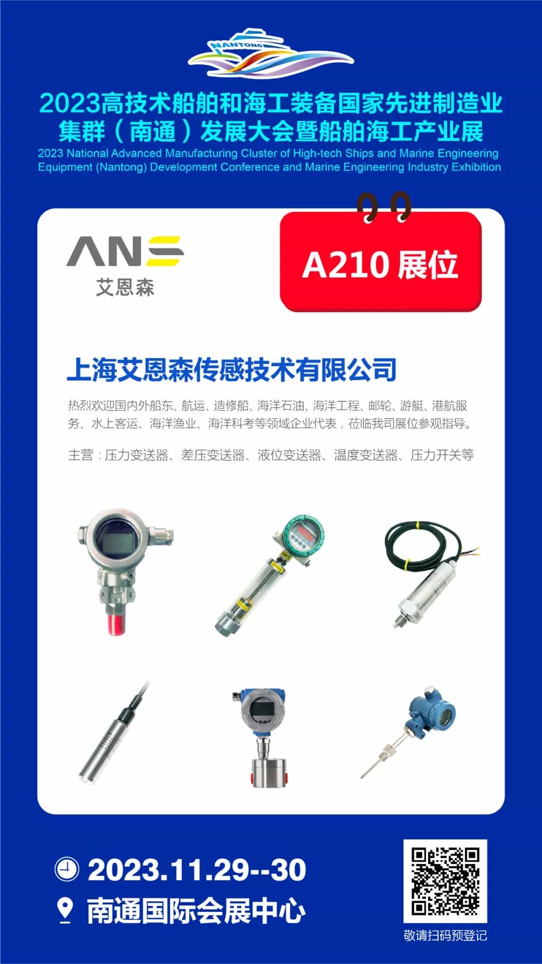 2023年11月29-30日,南通國際會(huì)展中心A210展位,上海艾恩森與全球船舶人相約南通,走進(jìn)世界級船舶海工先進(jìn)制造業(yè)集群!