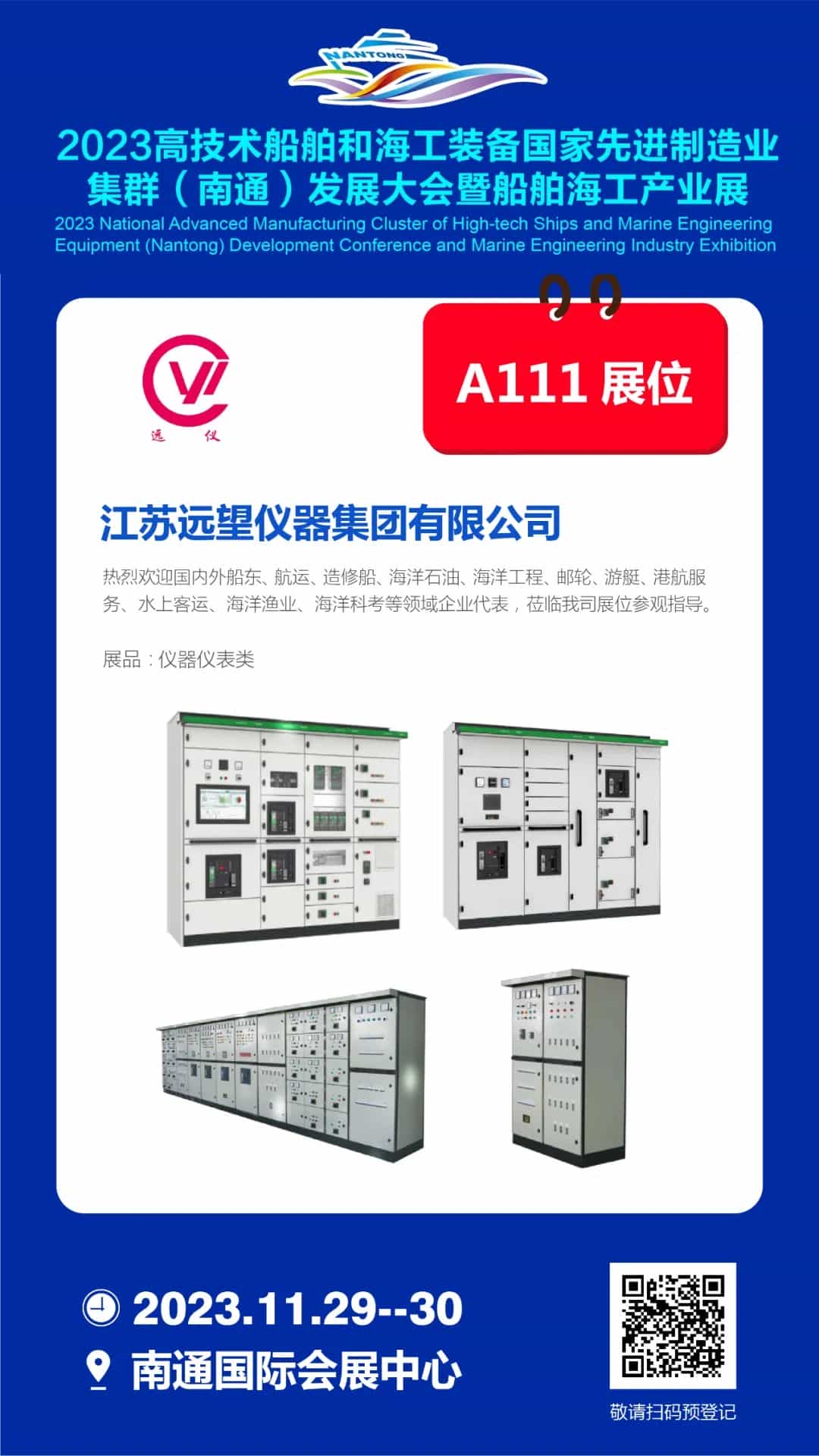 2023年11月29-30日,南通國際會展中心A111展位,遠(yuǎn)望儀器與全球船舶人相約南通,走進(jìn)世界級船舶海工先進(jìn)制造業(yè)集群!