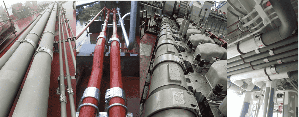 產(chǎn)品適用于金屬管之間的連接,金屬管與非金屬管之間的連接,以及非金屬管之間的連接,具有減震降噪,抗沖擊,節(jié)省空間,減重,角度和軸向偏移補償,免焊接,快速安裝等優(yōu)勢。