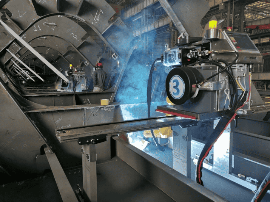 2012年以來,公司聚焦船舶建造關(guān)鍵工序,打造船體、管舾兩個(gè)智能化車間,逐步實(shí)現(xiàn)由局部流程到全流程的數(shù)字化管控。建立高效管控的制造執(zhí)行系統(tǒng)(MES),上承企業(yè)資源計(jì)劃管理系統(tǒng)(ERP),下接車間底層智能化設(shè)備,解決信息脫節(jié)問題;在船舶建造的預(yù)處理、切割、焊接、裝配、管加工等主要工序,建成投產(chǎn)21條智能化生產(chǎn)線,核心智能裝備的創(chuàng)新應(yīng)用走在國內(nèi)船舶行業(yè)前列;建設(shè)信息管控平臺,打通船舶項(xiàng)目計(jì)劃、設(shè)計(jì)數(shù)據(jù)、產(chǎn)品模型、工程圖紙、技術(shù)規(guī)范等數(shù)據(jù)流,實(shí)現(xiàn)造船數(shù)字化集成。