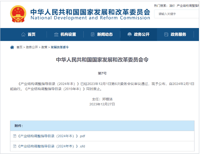 近日,國家發(fā)展和改革委員會修訂并發(fā)布了《產(chǎn)業(yè)結(jié)構(gòu)調(diào)整指導(dǎo)目錄(2024年本)》,將自2024年2月1日起正式施行。