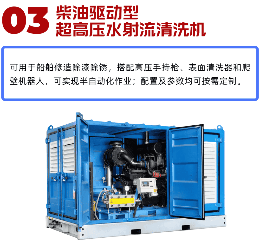 富森環(huán)保研發(fā)的船用高壓清洗機(jī)、甲板除銹機(jī)、洗艙機(jī)、防爆清洗機(jī)、氣動(dòng)清洗機(jī)、空化射流清洗機(jī)等廣泛應(yīng)用于船舶修造領(lǐng)域;同時(shí)公司也承接船體清洗與除銹除漆服務(wù),不斷實(shí)踐“用水創(chuàng)造價(jià)值”的理念。