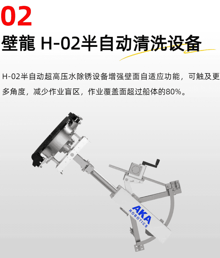 ② 0-65度自由度調(diào)節(jié),可作業(yè)于船舶外板豎直大平面,以及船尾反頂、舷窗等非規(guī)則區(qū)域;
